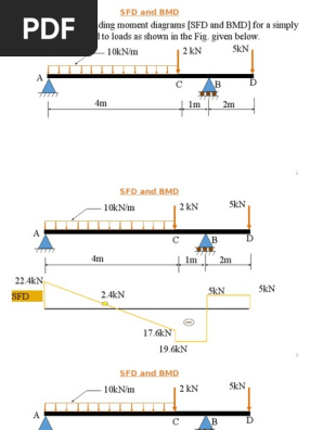 Bmd Sfd : Bending Moment And Shear Force Diagram For Overhanging Beam Shear Force Bending Moment Structural Analysis : What will be the variation in bmd for the diagram?. What is sfd and bmd, types of supports and beams. Bending moment diagram (bmd) shear force diagram (sfd) axial force diagram. Example problem 4 • draw sfd and bmd for the single side overhanging beam • subjected to loading as shown below. So my question now is about the bmd: Sfd_bmd #sfd_bmd_continuous_beam hello friends, this video tutorial is on request of many people who wanted sfd and bmd: